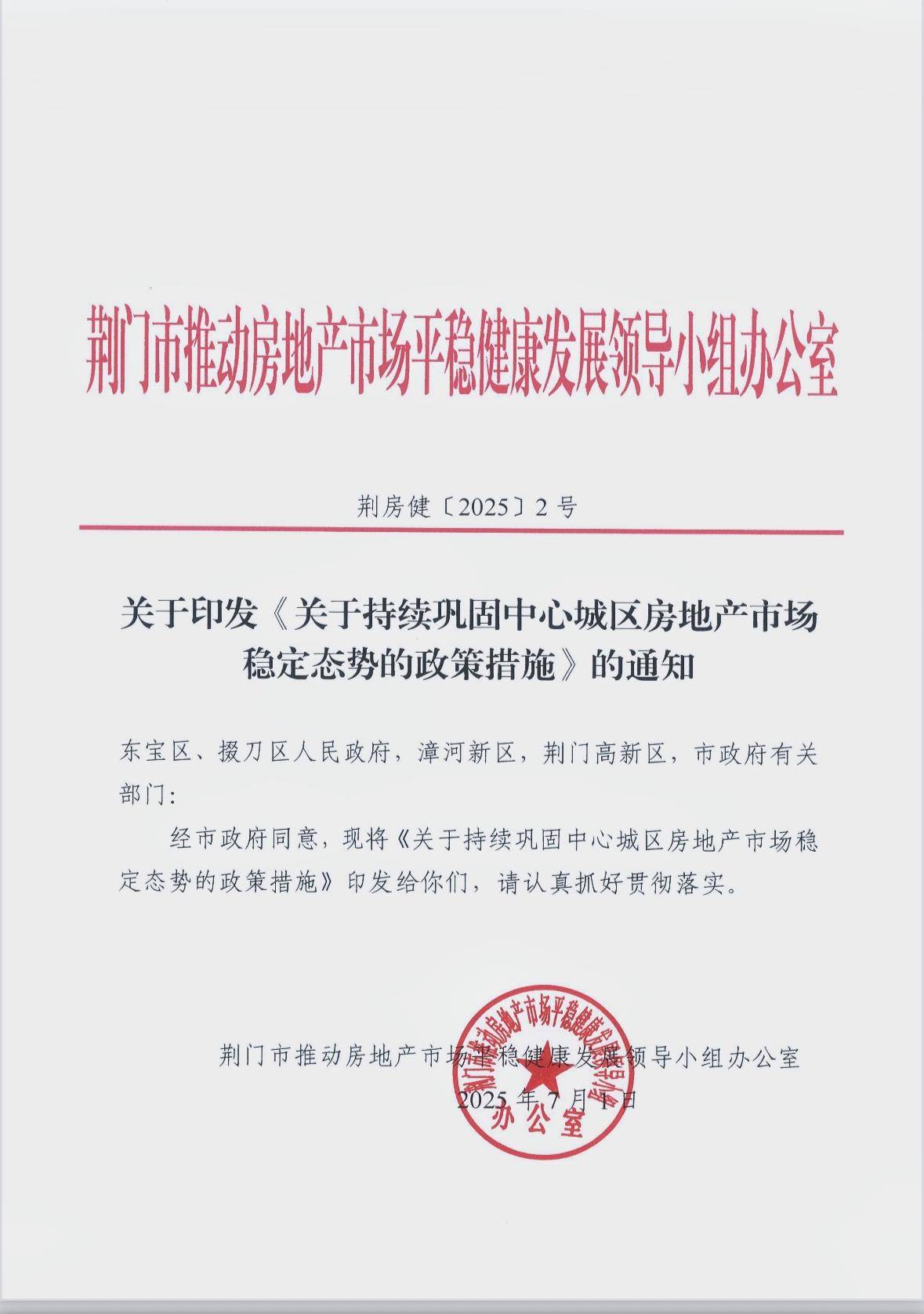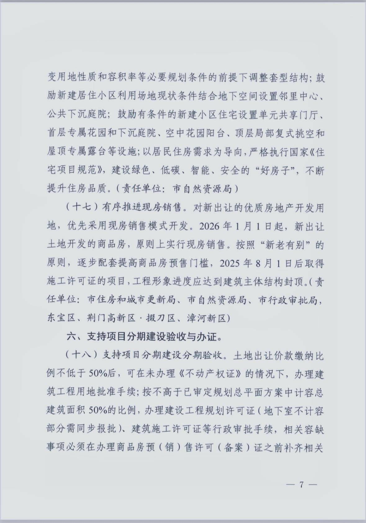 湖北日报讯(记者覃万钟、通讯员李慧敏)7月1日,荆门出台《关于持续巩固中心城区房地产市场稳定态势的政策措施》,明确提出“有序推进现房销售”。